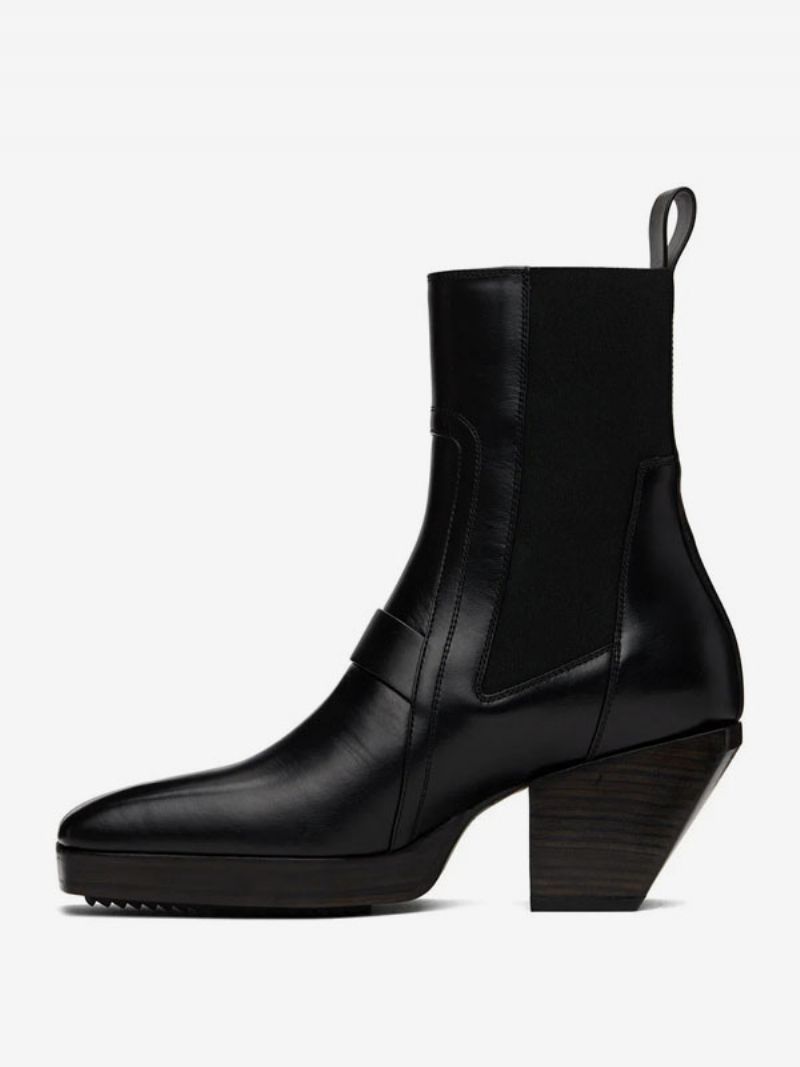 Męskie CZarne Kwadratowe Noski Zygzakowata Gumowa Podeszwa Z Tyłu Uchwyt Do Ciągnięcia Elastyczne Panele Boczne Buty Na Wysokim Obcasie Chelsea Balowe Imprezowe