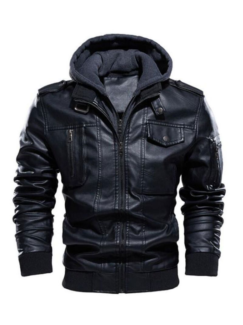 Męskie Kurtki Skórzane Blok Kolorów Zamek Błyskawiczny Pogrubiona Wiatrówka Modny Warstwowy Kawowy Brąz