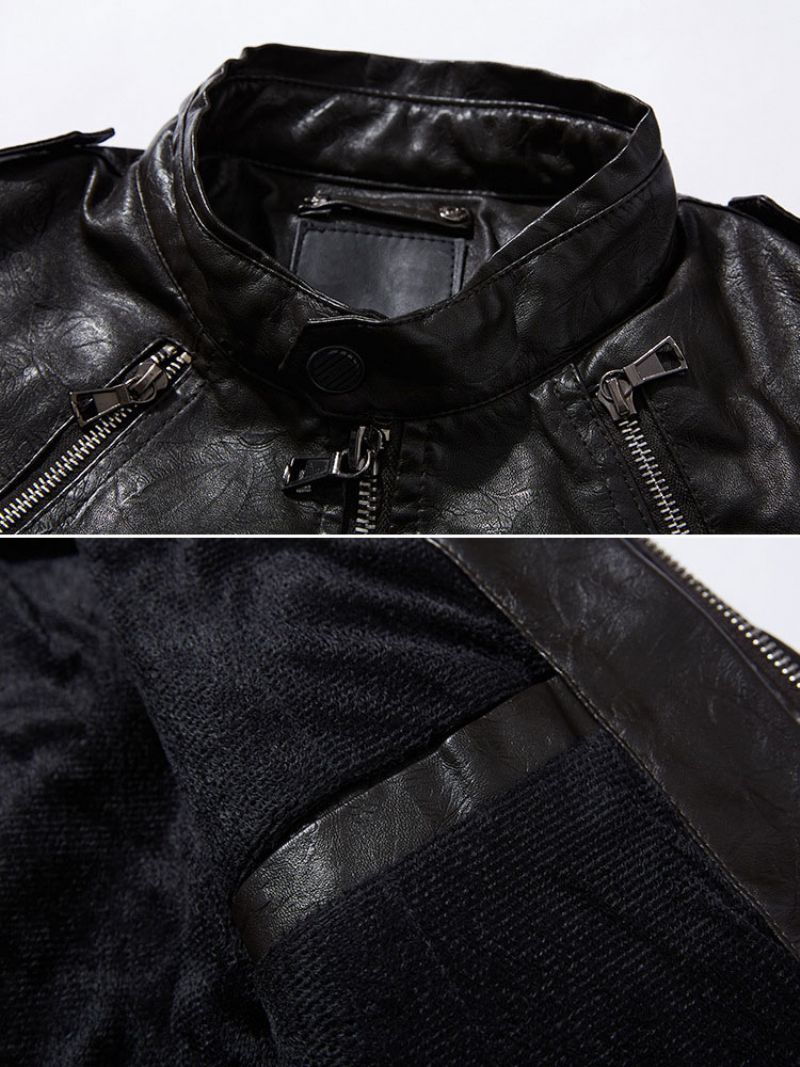 Męskie Kurtki Skórzane Zamek Pu Skóra Gruba Wiatrówka Stylowa Warstwowa CZarna