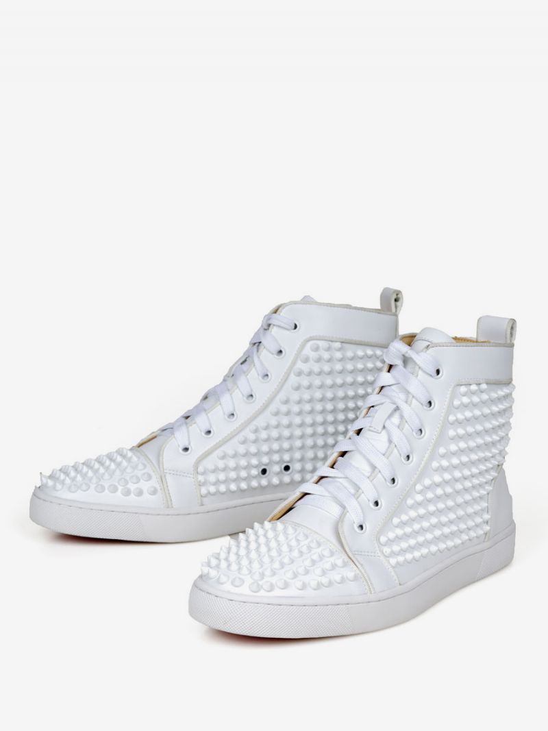 Męskie Wysokie Trampki Z Nitami I Białą Skórą Pu