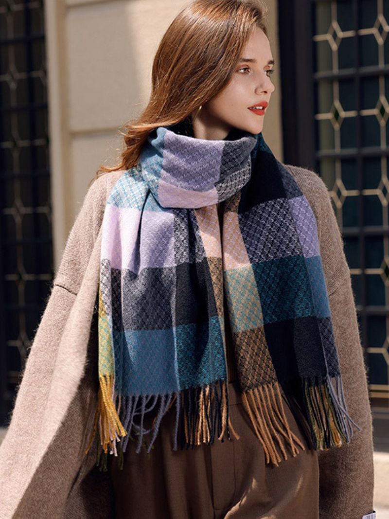 Nadrukowany Szalik W Kratę Z Frędzlami Modne Szaliki Stylu Vintage Dla Kobiet