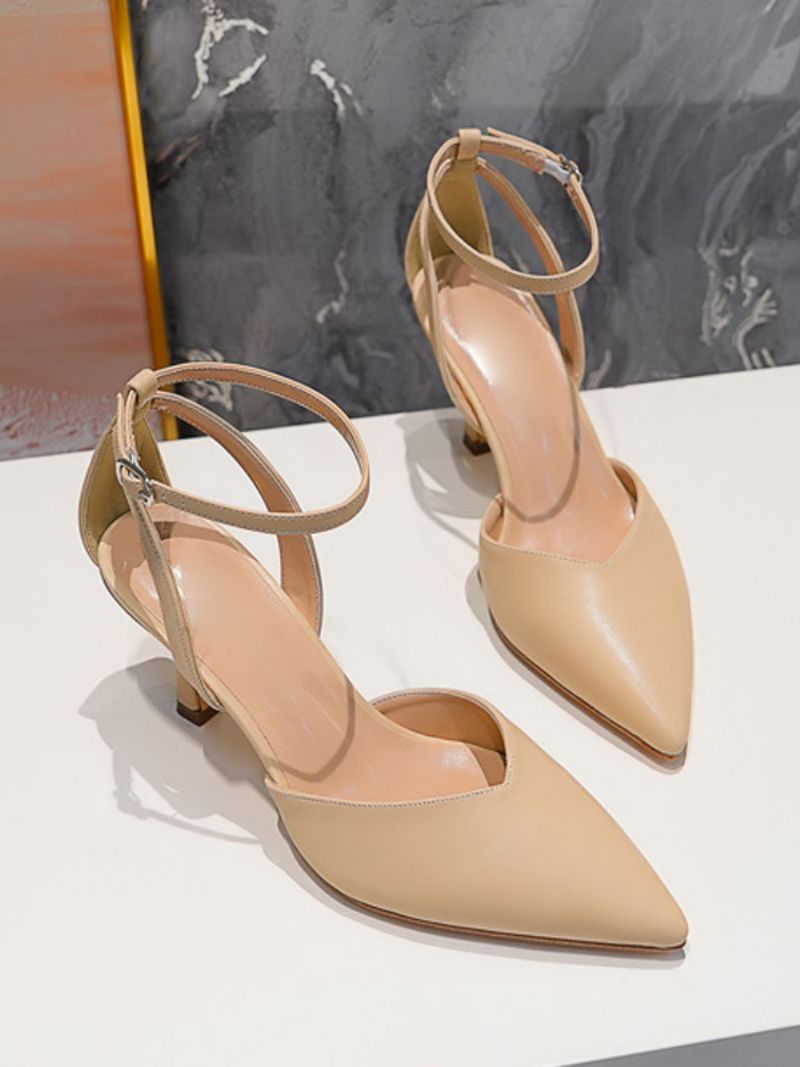 Nude Kitten CZółenka Na Obcasie Damskie Szpiczaste Z Paskiem Kostkę