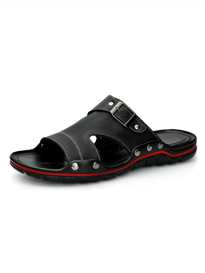 Sandały Męskie Wsuwana Gumowa Podeszwa Ze Skóry Bydlęcej