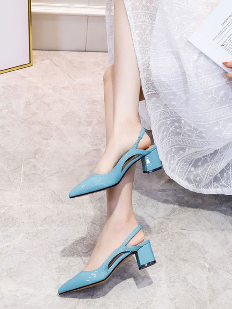 Średnio Niskie Obcasy Dla Kobiet Szykowne Szpiczaste Noski Masywny Obcas Wsuwane Efektowne Niebieskie Szpilki Bez Pięty