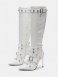 Skórzane Pu Metalowe Detale Szpiczaste Buty Na Obcasie W Kształcie Stożka Do Połowy Łydki Dla Kobiet