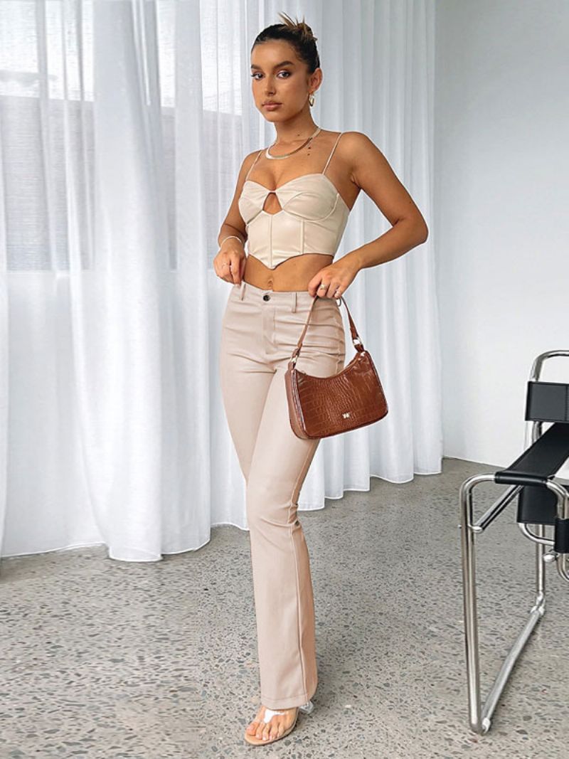 Spodnie Damskie CZarne Klubowe Ze Skóry Pu