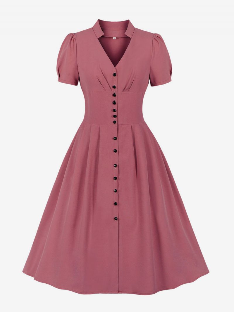 Sukienka Retro Z Lat 50 Xx Wieku W Stylu Audrey Hepburn Różowa Damska Typu Swing Krótkim Rękawem I Dekoltem Szpic