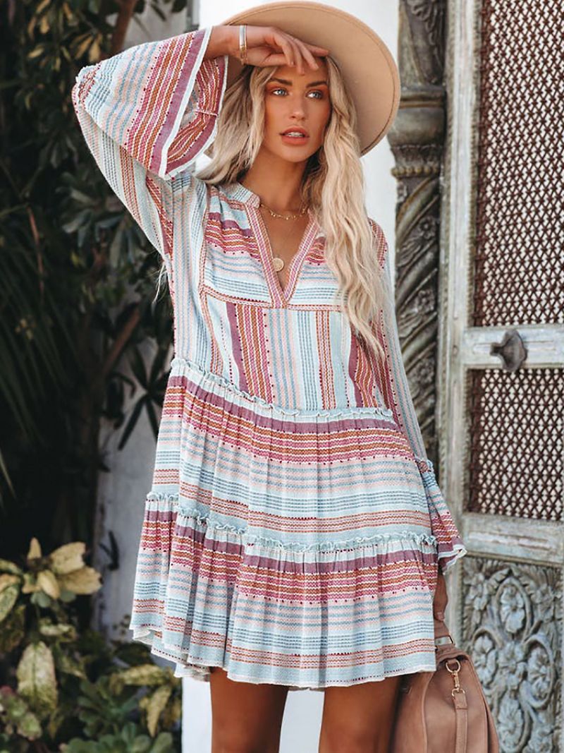 Sukienki Typu Shift CZerwona Damska Fantastyczna Tunika Z Dekoltem W Kształcie Litery V
