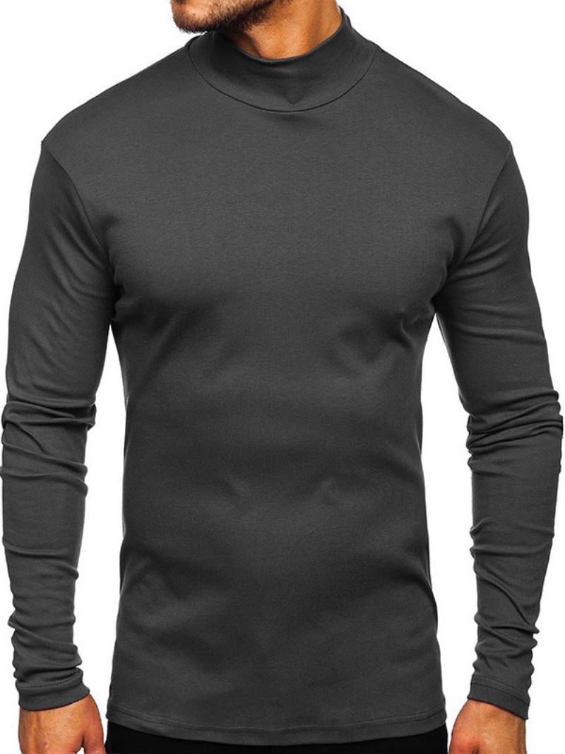 T-shirty Męskie Casual Wysoki Kołnierz Nadwymiarowe Długie Rękawy
