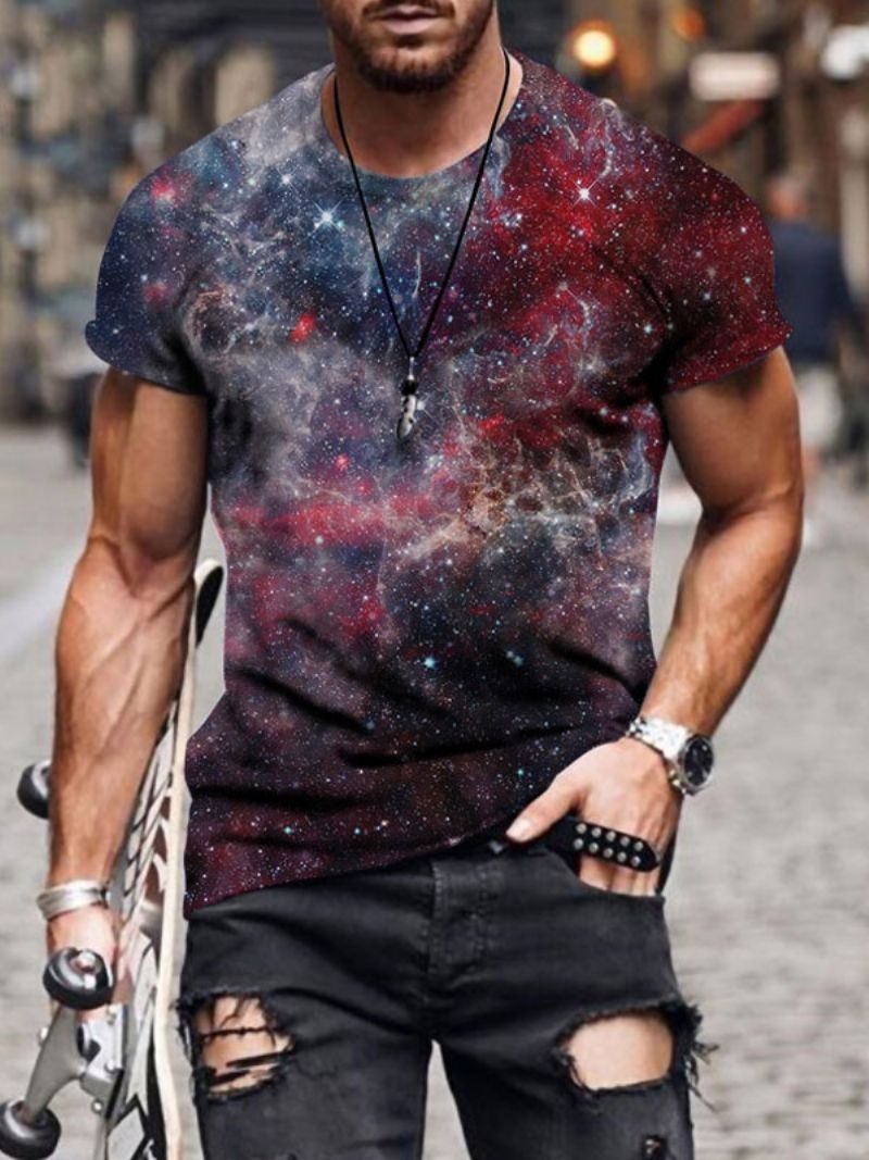 T-shirty Męskie Casual Z Krótkim Rękawem I Nadrukiem W Kształcie Biżuteryjnego Dekoltu
