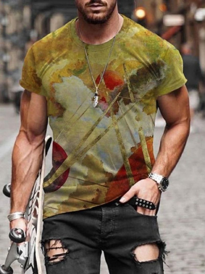 T-shirty Męskie Klasyczne Z Krótkimi Rękawami I Nadrukiem W Kształcie Biżuteryjnego Dekoltu