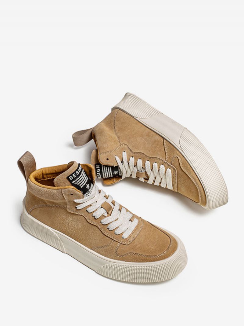 Trampki Męskie Przytulne Buty Codzienne Ze Skóry Bydlęcej Z Okrągłym Noskiem