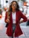 Welurowa Długa Marynarka Damska CZerwona Jednokolorowa Szykowna Ponadgabarytowa Wiosenno-jesienna Zrelaksowana Odzież Uliczna