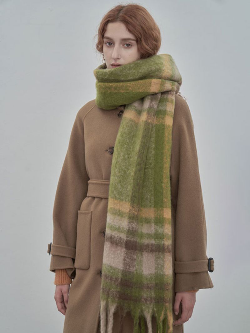 Zielony Szalik Z Awokado Dla Kobiet Atrakcyjny Zimowy Ciepły Długi Włókna W Kratę